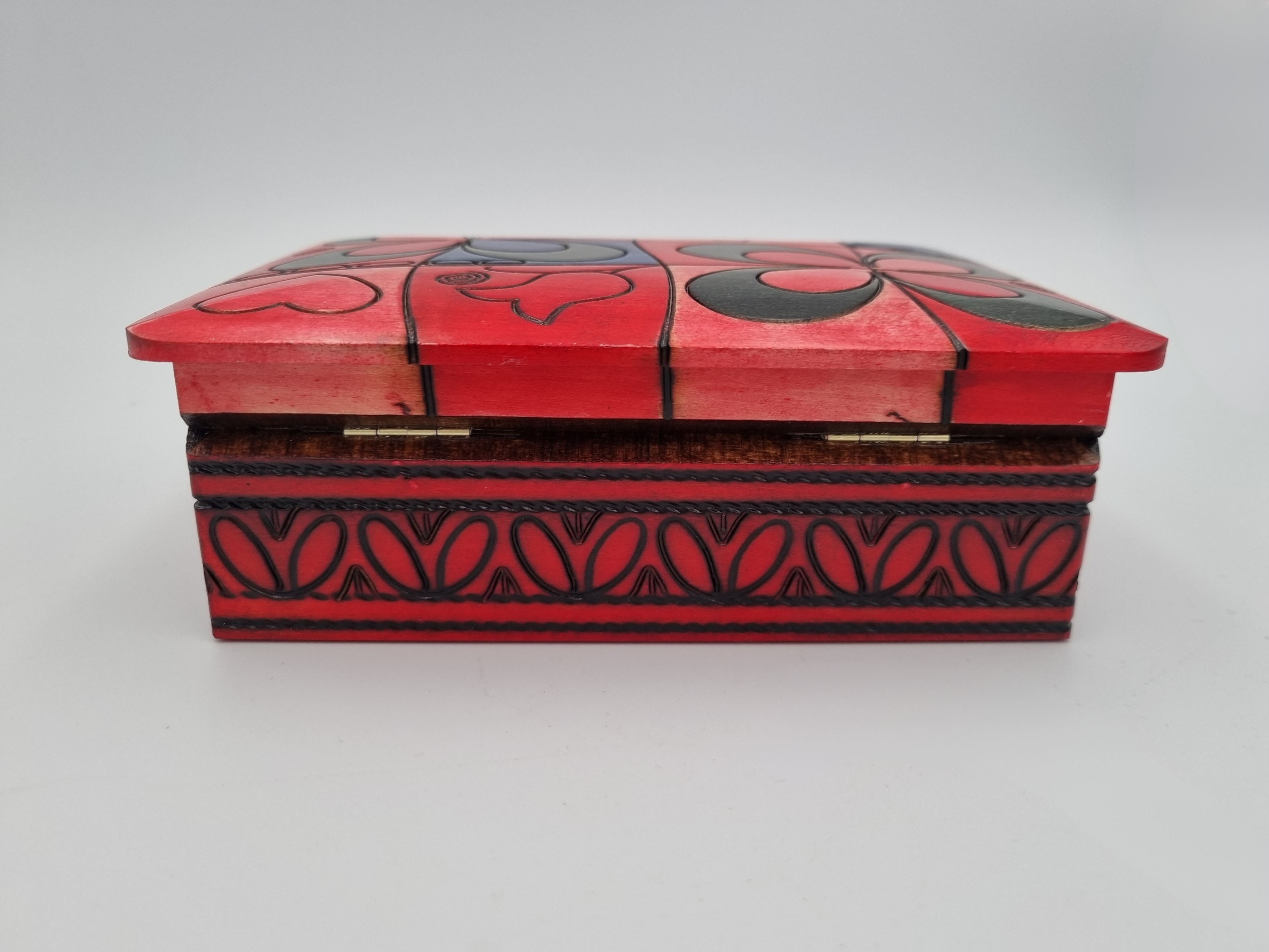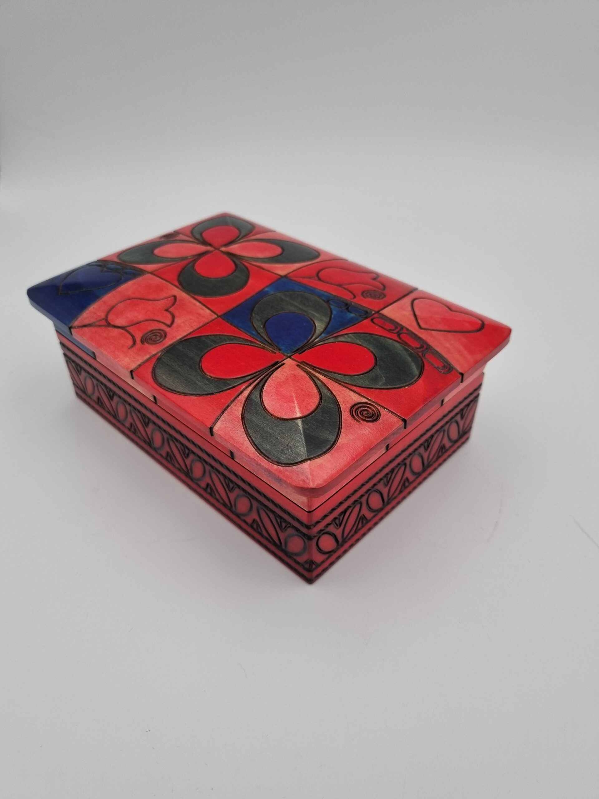 Kolorowy motyw przyciąga wzrok i ożywia przestrzeń, dlatego szkatułka będzie szczególnie bliska osobom, które cenią barwne akcenty, oryginalne detale i przedmioty z artystycznym wyrazem. To propozycja dla tych, którzy lubią otaczać się kolorem w artystycznej formie.
